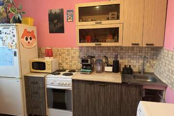 Квартира расположена на 12 этаже 16-ти этажного кирпичного дома с шикарным видом на реку. На территории дома благоустроенные детские площадки и места отдыха. Дом расположен рядом с рекой Кубань и парком, где есть отличная набережная для прогулок или занятием спорта.